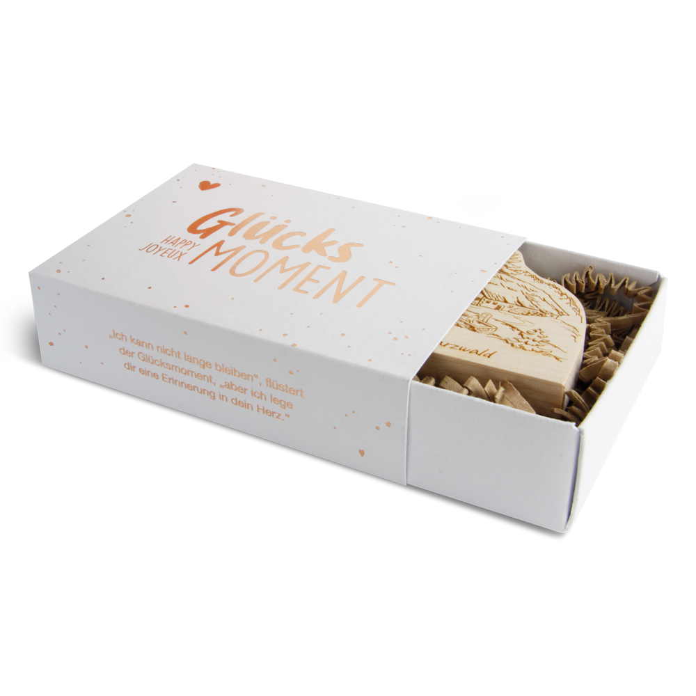 Durch die hochwertige Schiebeschachtel mit Goldfolien-Prägung wird jeder Lieblingsplatz zum perfekten Geschenk oder Mitbringsel und hinterlässt eine bleibende Erinnerung – einen echten Glücksmoment!